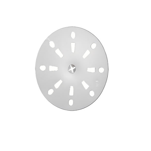 1-3/4″ diameter white washer with keyholes. Prongs enable pre-spotting into insulation for easy on-the-wall fastener assembly.