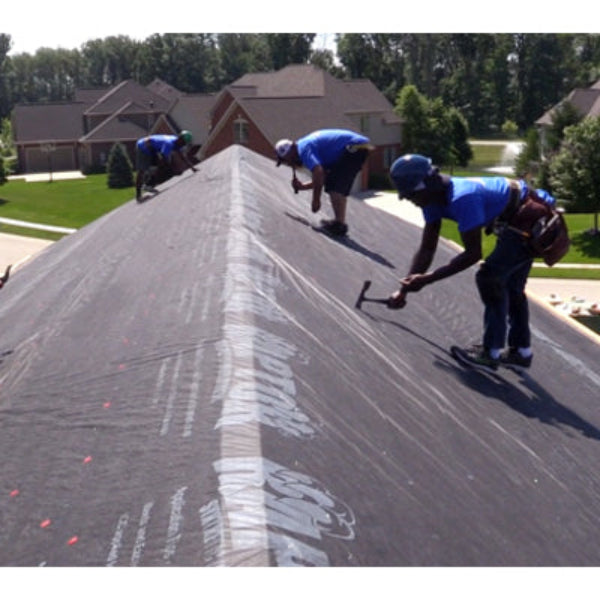 Imagine a roofing underlayment you can install with regular roofing nails. That won’t tear easily or blow off the roof. That lies flat and stays flat, with a black surface that dries off quickly and shows chalk lines clearly. An underlayment with incredible traction, wet or dry.